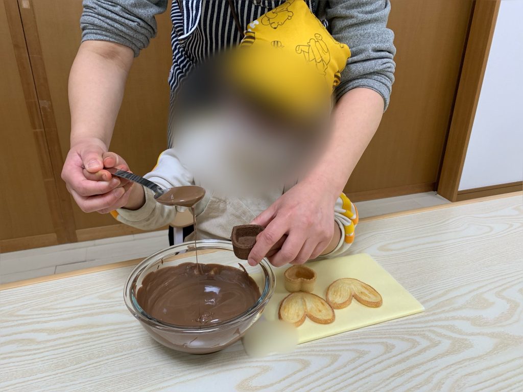 溶かしたチョコを型に入れる作業では、皆さんとても上手にチョコを流しいれていました