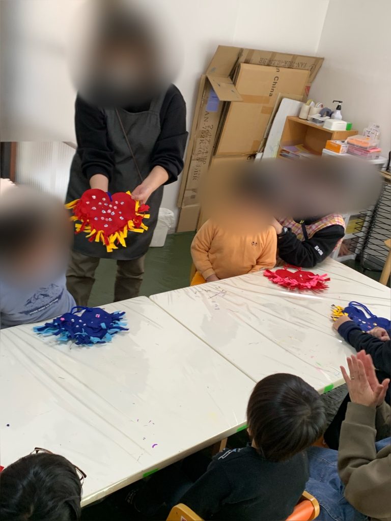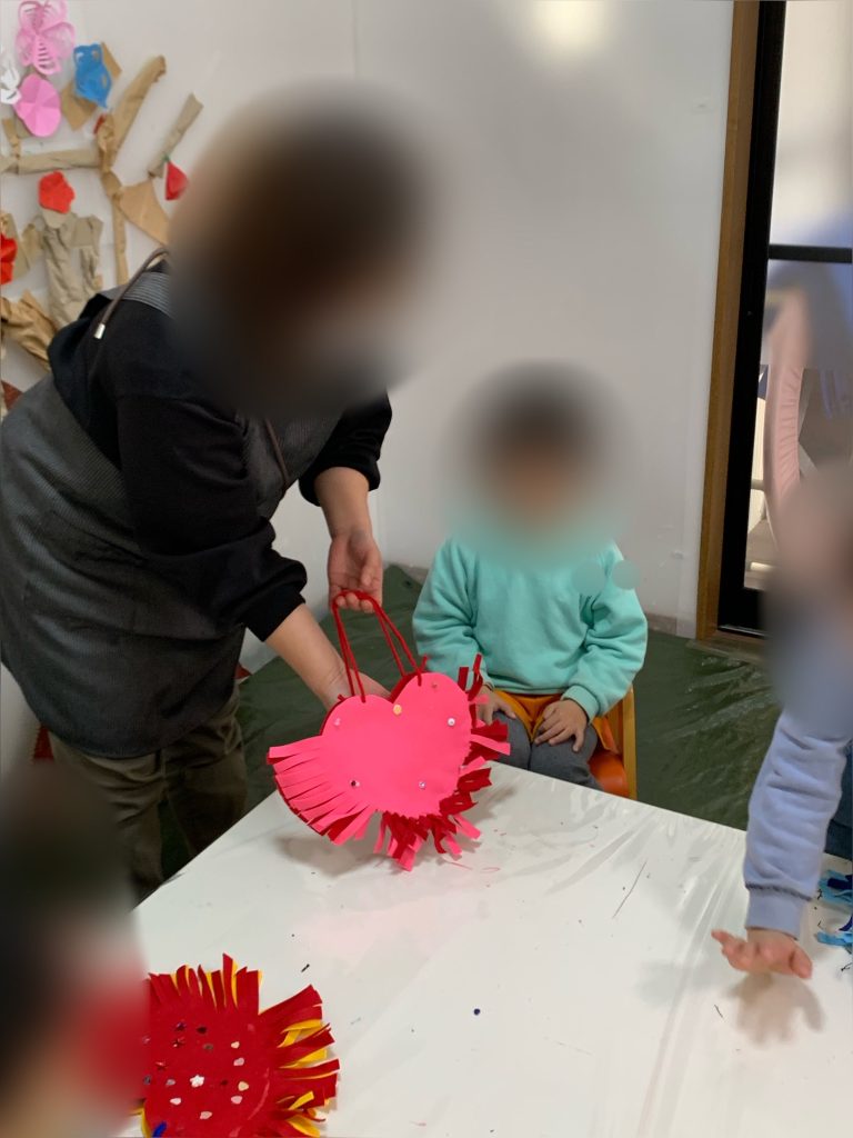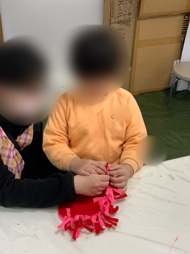 この日は「結ぶ」動作を主として作られるハートバッグ制作にチャレンジしました( ·ㅂ·)و ̑̑