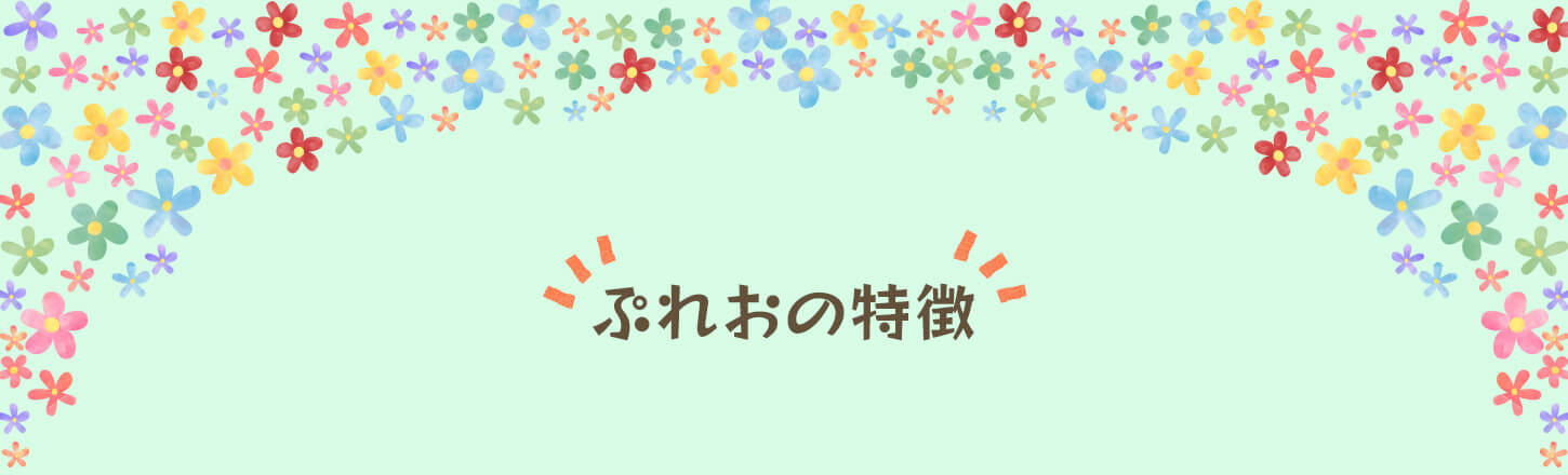 ぷれおのプログラムは、楽しい体験を通じて心も体ものびのびと成長できるよう、そしてお子様が笑顔で毎日を過ごせるようサポートいたします。