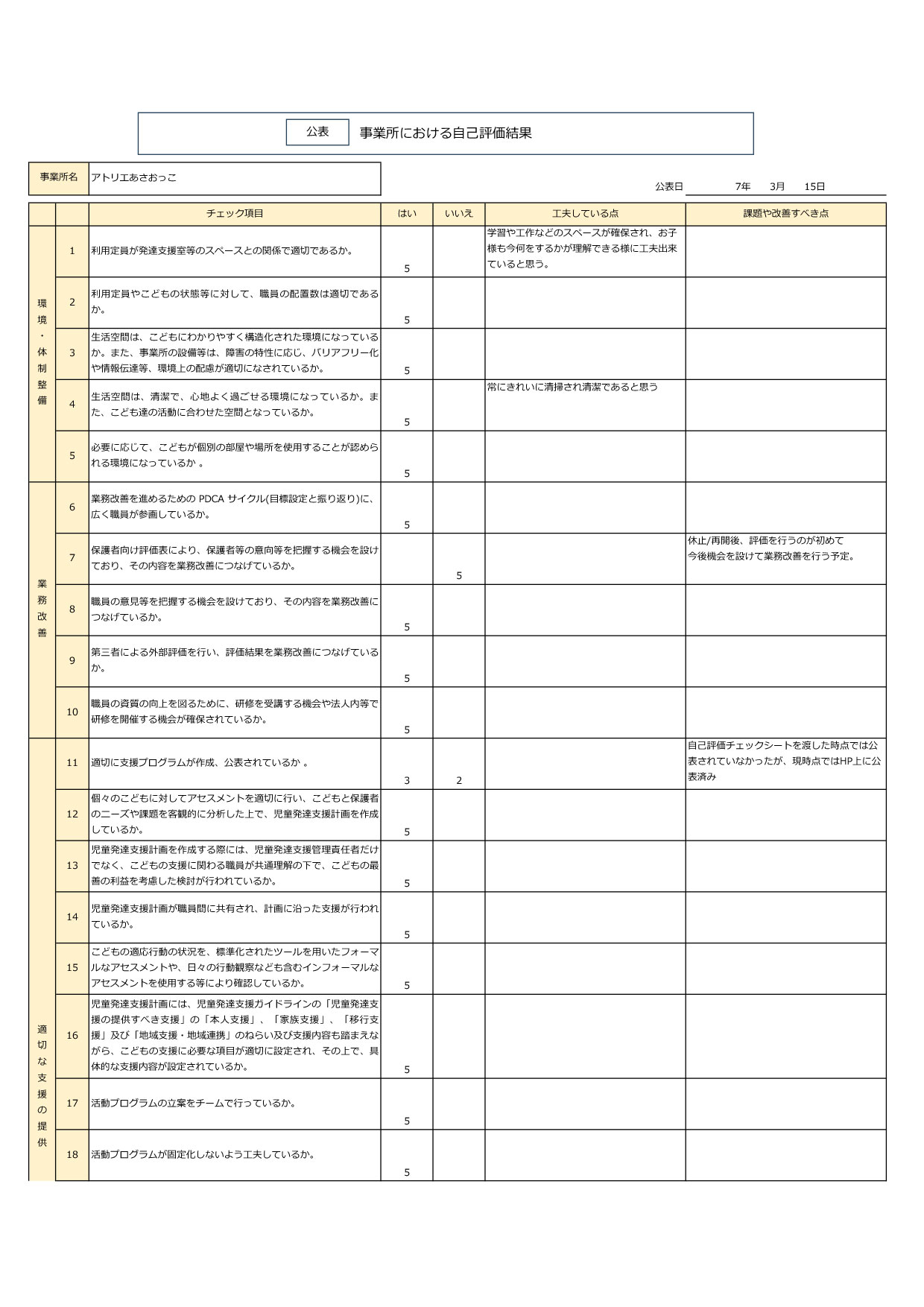 2025年3月15日付け「事業所における自己評価結果」を公表いたします。