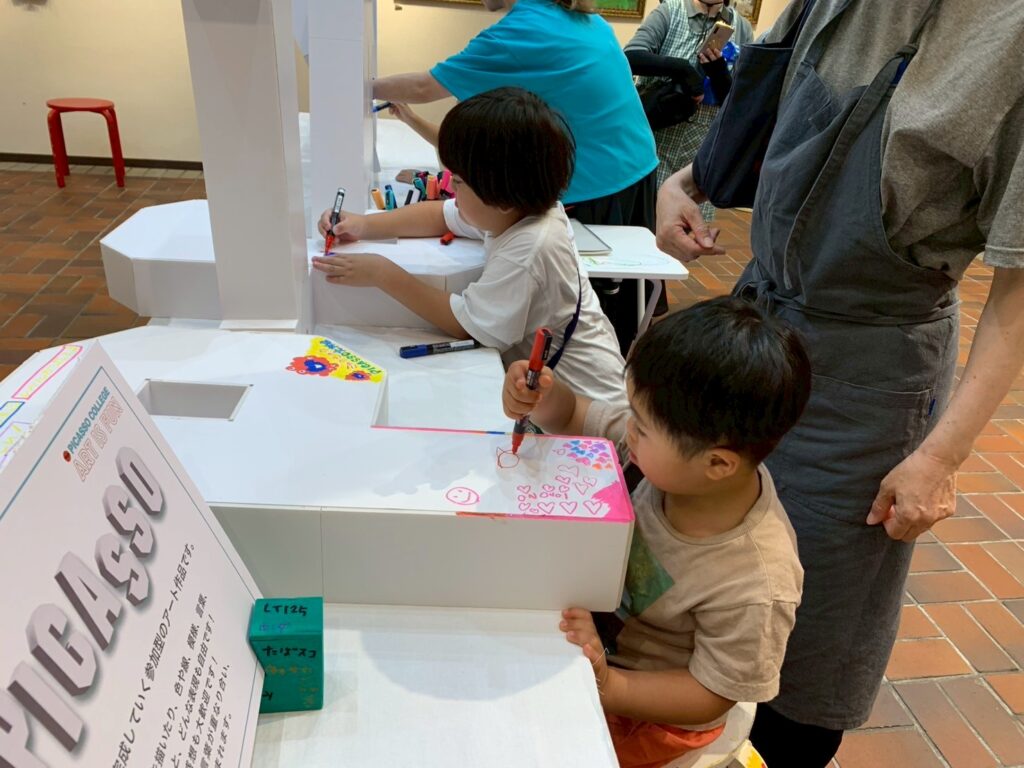 PICASSOの形をしたオブジェに好きな絵を描く事が出来たり、展示されている絵画を鑑賞したり、 2025年大阪・関西万博の公式キャラクターミャクミャクを作る事も出来ました!